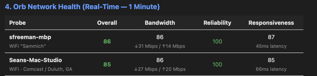 This data can be paired with other sources as well, validating that the Orb clients at the site are still happy and healthy and passing traffic even with the AP going offline.